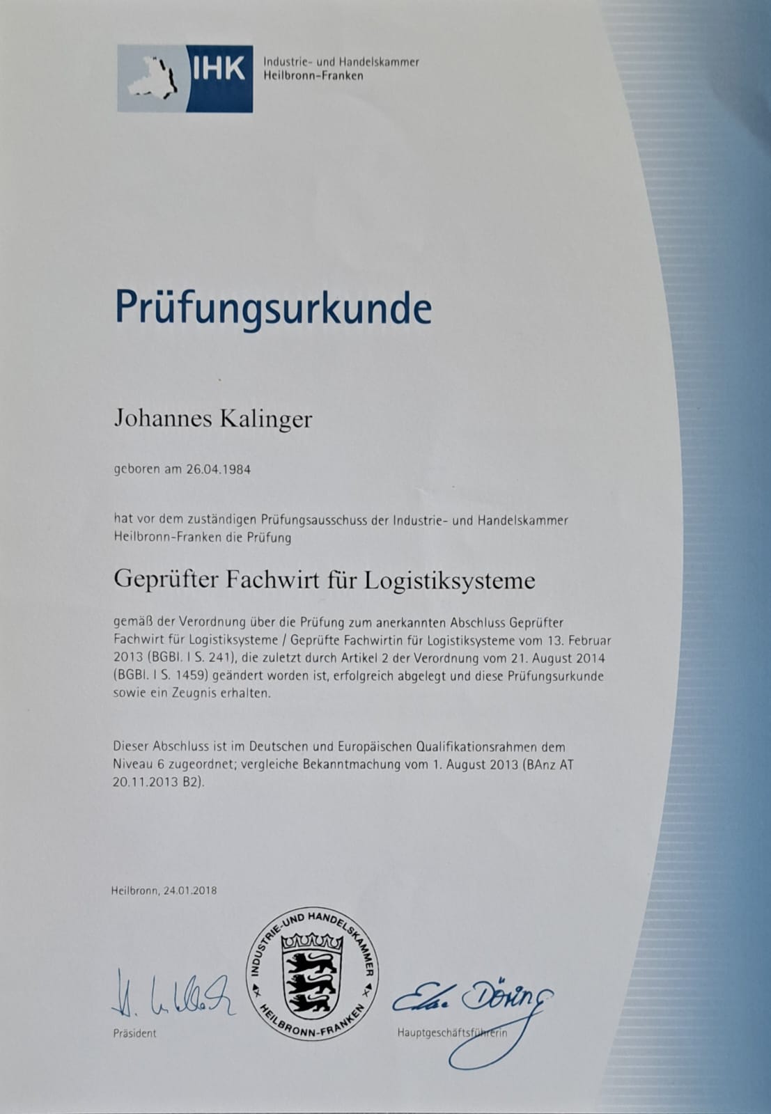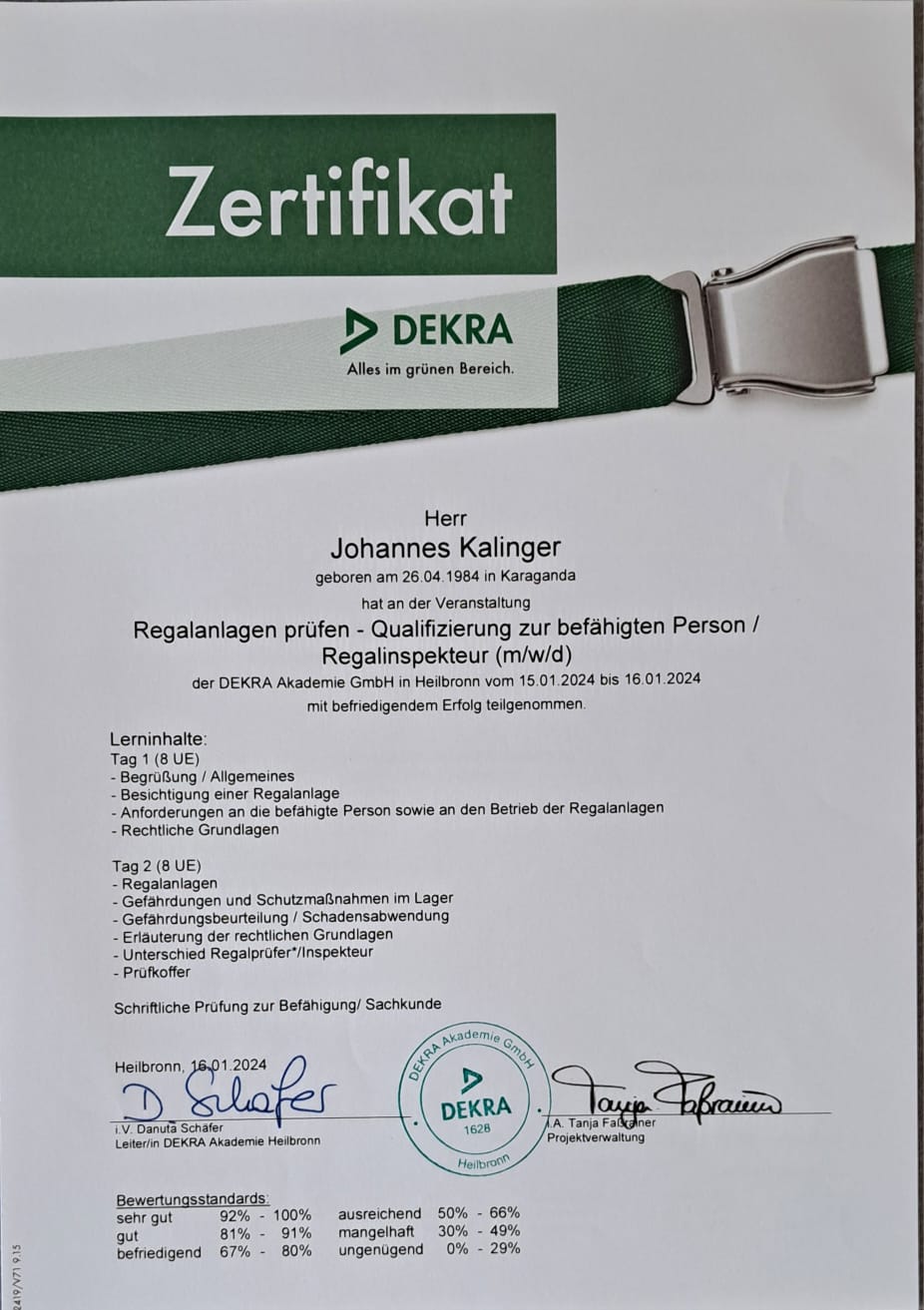Ich bin 40 Jahre alt (Stand 2024), verheiratet und stolzer Vater von zwei Kindern. Meine berufliche Laufbahn begann mit einer Ausbildung im Bereich Automobil, gefolgt von einer Weiterbildung zum geprüften Fachwirt für Logistiksysteme. Ich habe mich außerdem als Brandschutzbeauftragter und Lagerinspekteur sowie Ausbilder qualifiziert und verfüge über langjährige Erfahrung in der Logistikplanung, Mitarbeiterführung und Ausbildung.